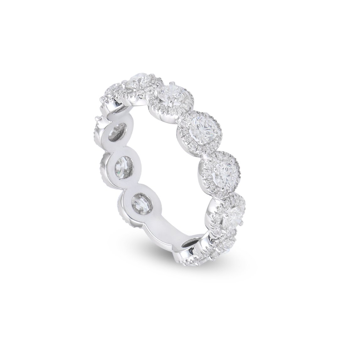Every diamond is hand-set with care, giving the ring remarkable precision and lasting beauty. The result is a white gold diamond band that captures light beautifully from every angle. Elegant, versatile, and full of quiet power, it is a lasting emblem of sophistication—perfect for those who value both artistry and refinement.
